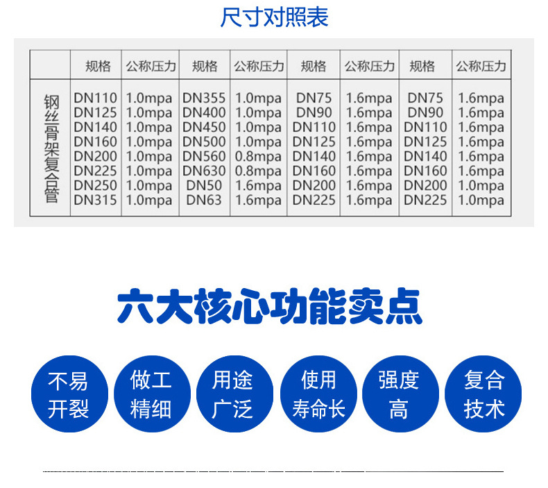 鋼絲網(wǎng)骨架聚乙烯復(fù)合管不但具有防腐、不結(jié)垢 、光滑低阻、保溫不結(jié)蠟、耐磨、質(zhì)量輕等塑料管的共同特點(diǎn),而且其獨(dú)特的結(jié)構(gòu)還造就了如下特點(diǎn):